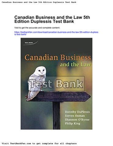 Download CANADIAN BUSINESS LAW 5TH EDITION DUPLESSIS PDF BOOK PDF